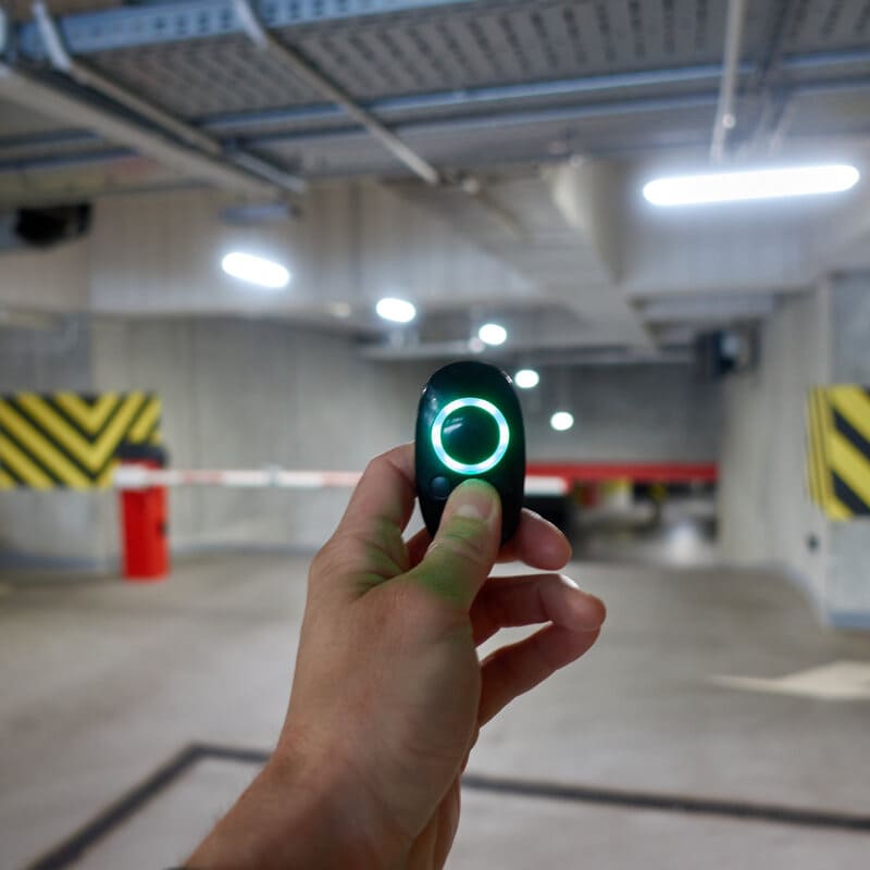 3. Schranke mit der kleinen mittleren Taste öffnen und durchfahren