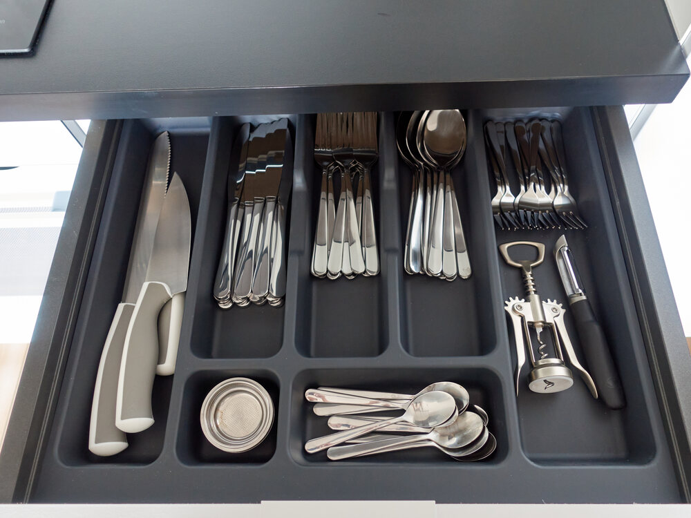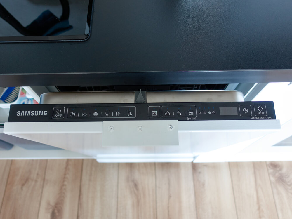 Die Geschirrspülmaschine ist selbsterklärend. Die Dunstabzugshaube ist im Schrank integriert. Von unten aus kann man diese sowie das Licht ein- und wieder ausschalten.