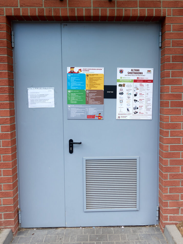 Für Restabfall gibt es einen Raum neben der Tiefgarageneinfahrt. Der Schlüssel dafür befindet sich im Flurschrank hinter der linken Tür.